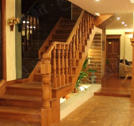 柚木,原產于東南亞地區,是一種硬度高、耐腐蝕的天然木材。其木質緊密,紋理清晰,色澤溫暖,從淺黃到深褐色不等,能夠適應多種家居風格。在樓梯設計中,柚木不僅提供結構